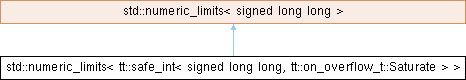 Inheritance diagram for std::numeric_limits< tt::safe_int< signed long long, tt::on_overflow_t::Saturate > >: