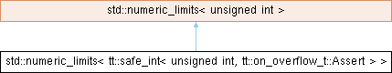 Inheritance diagram for std::numeric_limits< tt::safe_int< unsigned int, tt::on_overflow_t::Assert > >: