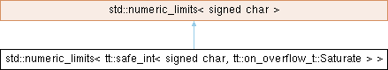 Inheritance diagram for std::numeric_limits< tt::safe_int< signed char, tt::on_overflow_t::Saturate > >: