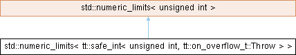 Inheritance diagram for std::numeric_limits< tt::safe_int< unsigned int, tt::on_overflow_t::Throw > >:
