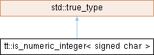 Inheritance diagram for tt::is_numeric_integer< signed char >: