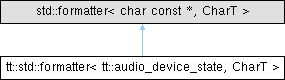 Inheritance diagram for tt::std::formatter< tt::audio_device_state, CharT >: