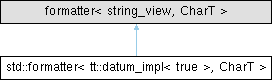 Inheritance diagram for std::formatter< tt::datum_impl< true >, CharT >: