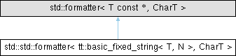 Inheritance diagram for std::std::formatter< tt::basic_fixed_string< T, N >, CharT >: