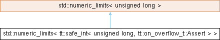Inheritance diagram for std::numeric_limits< tt::safe_int< unsigned long, tt::on_overflow_t::Assert > >: