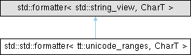 Inheritance diagram for std::std::formatter< tt::unicode_ranges, CharT >:
