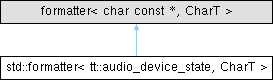 Inheritance diagram for std::formatter< tt::audio_device_state, CharT >: