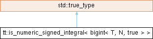 Inheritance diagram for tt::is_numeric_signed_integral< bigint< T, N, true > >: