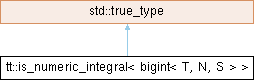 Inheritance diagram for tt::is_numeric_integral< bigint< T, N, S > >: