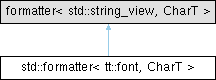 Inheritance diagram for std::formatter< tt::font, CharT >: