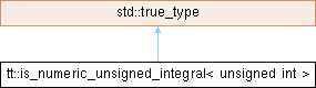 Inheritance diagram for tt::is_numeric_unsigned_integral< unsigned int >: