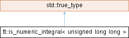 Inheritance diagram for tt::is_numeric_integral< unsigned long long >: