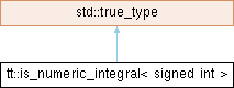 Inheritance diagram for tt::is_numeric_integral< signed int >: