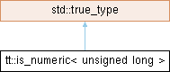 Inheritance diagram for tt::is_numeric< unsigned long >: