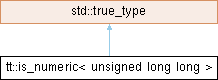 Inheritance diagram for tt::is_numeric< unsigned long long >: