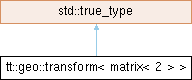 Inheritance diagram for tt::geo::transform< matrix< 2 > >: