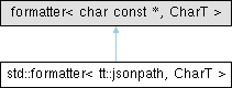 Inheritance diagram for std::formatter< tt::jsonpath, CharT >: