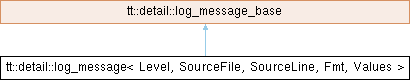 Inheritance diagram for tt::detail::log_message< Level, SourceFile, SourceLine, Fmt, Values >: