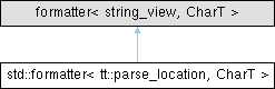 Inheritance diagram for std::formatter< tt::parse_location, CharT >: