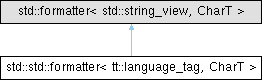 Inheritance diagram for std::std::formatter< tt::language_tag, CharT >: