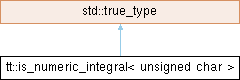 Inheritance diagram for tt::is_numeric_integral< unsigned char >: