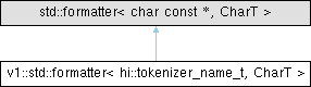 Inheritance diagram for v1::std::formatter< hi::tokenizer_name_t, CharT >: