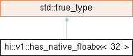 Inheritance diagram for hi::v1::has_native_floatxx< 32 >: