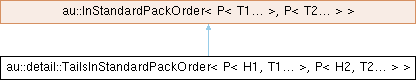 Inheritance diagram for au::detail::TailsInStandardPackOrder< P< H1, T1... >, P< H2, T2... > >: