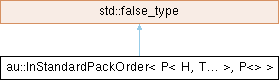 Inheritance diagram for au::InStandardPackOrder< P< H, T... >, P<> >: