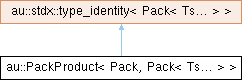 Inheritance diagram for au::PackProduct< Pack, Pack< Ts... > >: