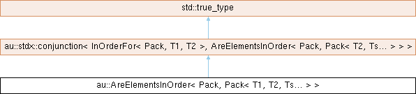 Inheritance diagram for au::AreElementsInOrder< Pack, Pack< T1, T2, Ts... > >: