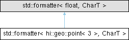 Inheritance diagram for std::formatter< hi::geo::point< 3 >, CharT >: