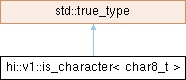 Inheritance diagram for hi::v1::is_character< char8_t >: