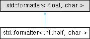 Inheritance diagram for std::formatter<::hi::half, char >: