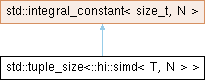Inheritance diagram for std::tuple_size<::hi::simd< T, N > >: