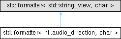std::formatter< hi::audio_direction, char > Struct Reference