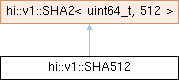 | Public Member Functions inherited from hi::v1::SHA2< uint64_t, 512 > | |