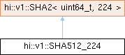 | Public Member Functions inherited from hi::v1::SHA2< uint64_t, 224 > | |