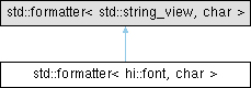 Inheritance diagram for std::formatter< hi::font, char >: