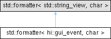 Inheritance diagram for std::formatter< hi::gui_event, char >: