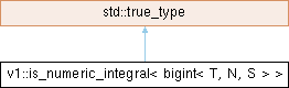 Inheritance diagram for v1::is_numeric_integral< bigint< T, N, S > >: