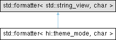 Inheritance diagram for std::formatter< hi::theme_mode, char >: