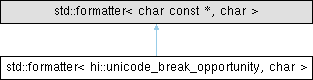 Inheritance diagram for std::formatter< hi::unicode_break_opportunity, char >: