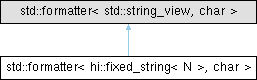 Inheritance diagram for std::formatter< hi::fixed_string< N >, char >: