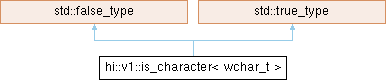 Inheritance diagram for hi::v1::is_character< wchar_t >: