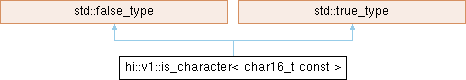 Inheritance diagram for hi::v1::is_character< char16_t const >: