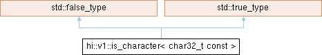 Inheritance diagram for hi::v1::is_character< char32_t const >:
