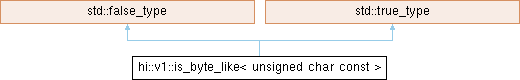 Inheritance diagram for hi::v1::is_byte_like< unsigned char const >: