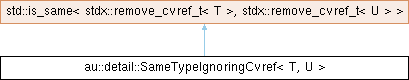 Inheritance diagram for au::detail::SameTypeIgnoringCvref< T, U >: