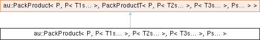 Inheritance diagram for au::PackProduct< P, P< T1s... >, P< T2s... >, P< T3s... >, Ps... >: